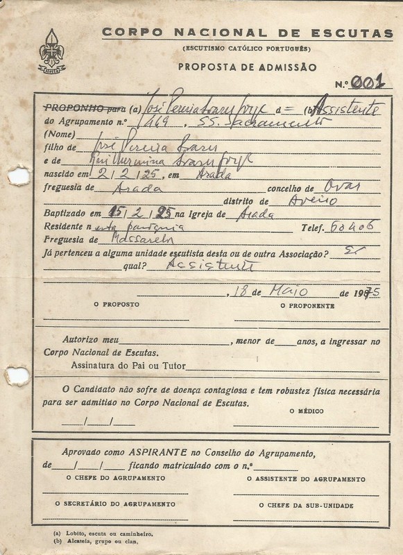 Tudo começou com um convite feito pelo Reverendo Padre Jorge no mês de Junho de 1974, ao antigo dirigente do nosso Agrupamento, o Chefe Sousa Costa.